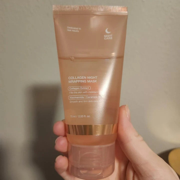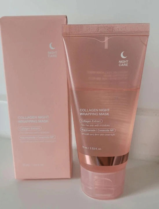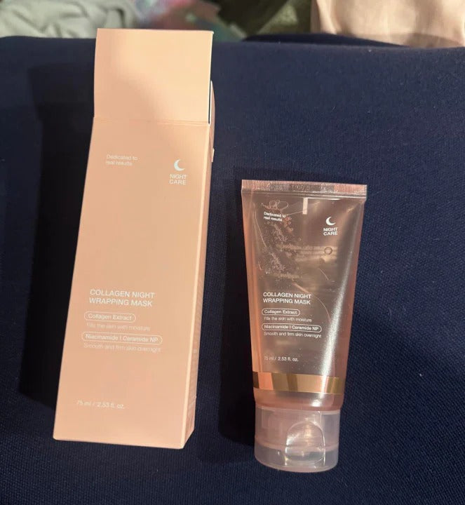 Our Collagen Night Wrapping Mask boosts collagen to smooth wrinkles and firm the skin.